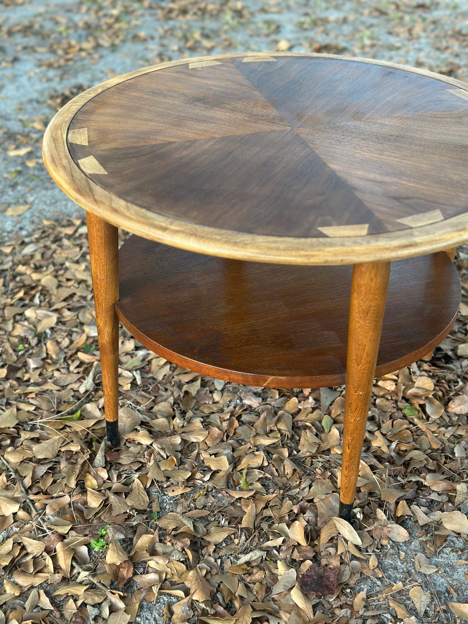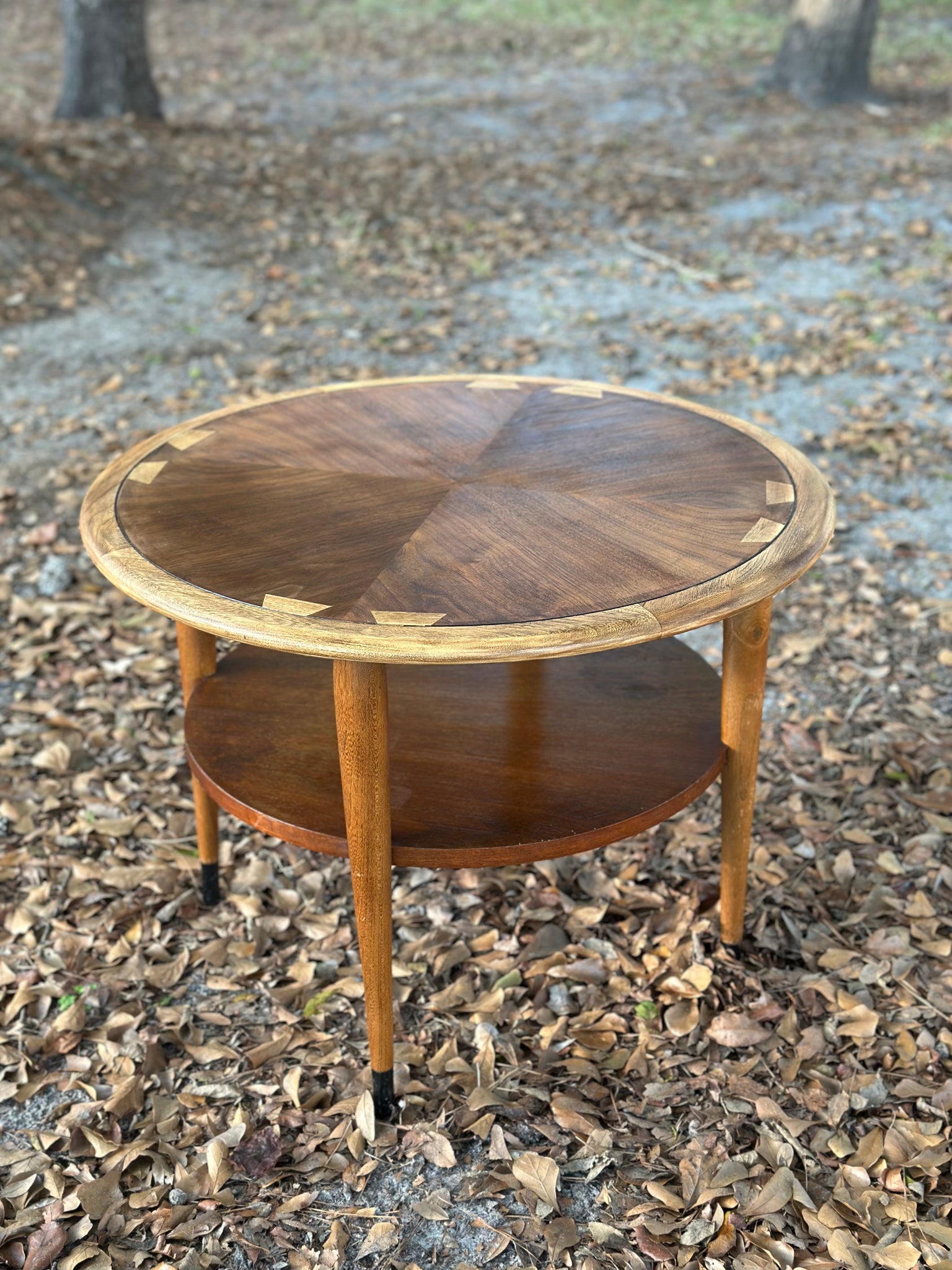 This is a great vintage MCM round side table and is part of the Lane Acclaim Series. It was in pretty rough shape so we sanded the top down and restained. It is not in perfect original condition but is the perfect additions to your boho mid century modern decor.