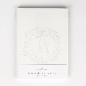 Paint your own special Christmas cards to send to loved ones this year! Sketches are printed on the front of each card with simple instructions for you to paint in with watercolors. You'll receive eight cards with two of each illustration: wreath, snowglobe, gifts, Christmas tree truck. Perfect for artists of all ages!