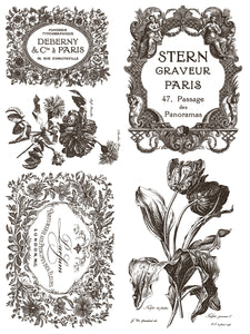 And don’t stop there! Try layering the delicate florals onto the center of a few mismatched plates for a darling display in a china cabinet or kitchen hutch. Floriography pairs beautifully with full-color floral accents from the Catharina, Wilde Bloemen, or Rose Botanicals Transfer.